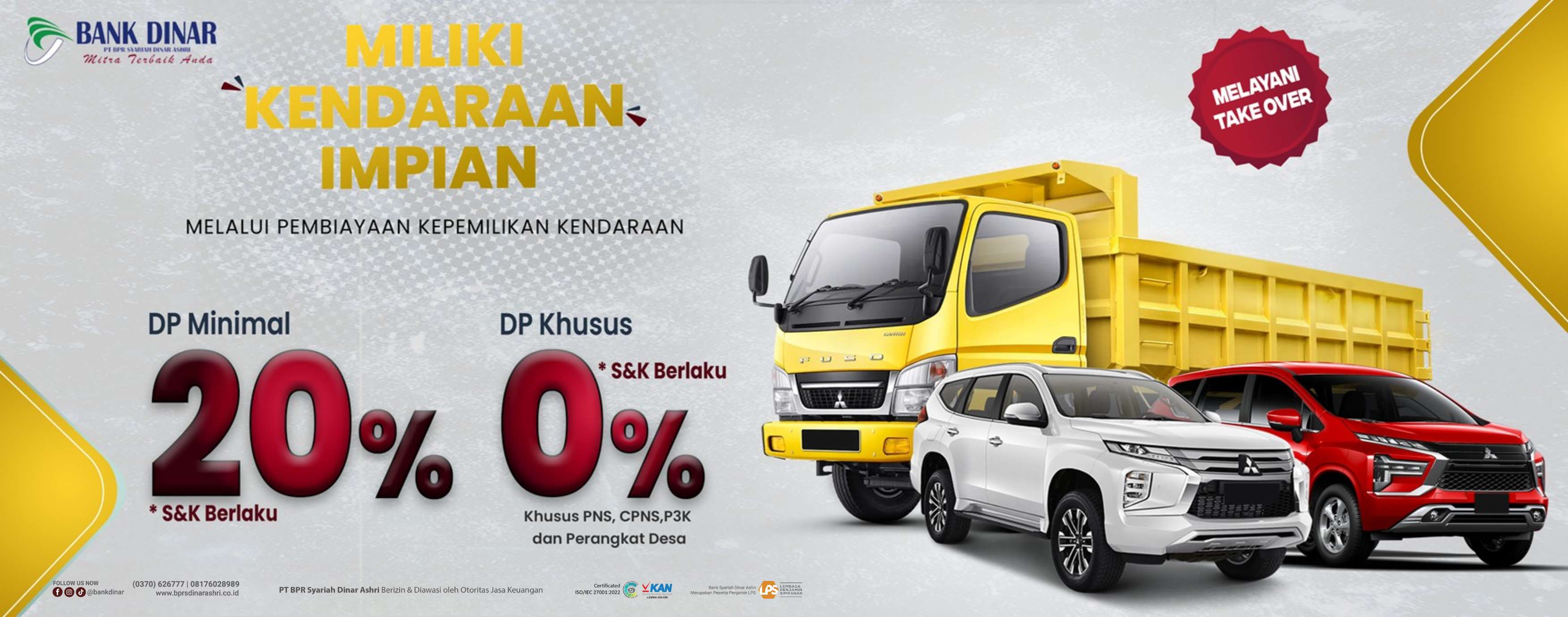 Nikmati kemudahan memiliki kendaraan impian Anda dengan Pembiayaan Kepemilikan Kendaraan Bank Dinar Ashri yang angsurannya jauh lebih ringan.