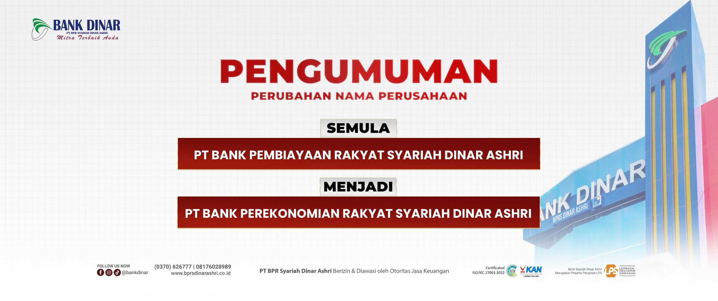 PT. BPRS Dinar Ashri (Bank Dinar) adalah bank atau lembaga keuangan milik swasta yang berkedudukan di Nusa Tenggara Barat. Dengan adanya PT Bank Perekonomian Rakyat Dinar Ashri ini dapat membantu masyarakat dan pemerintah dalam memajukan perekonomian dan mengatasi masalah sosial di Nusa Tenggara Barat.