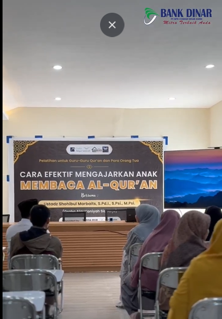 Bank Dinar mendukung acara "Pelatihan untuk Guru-Guru Al-Qur'an dan Para Orang Tua" yang diselenggarakan oleh Graha Alqur'aniyah Sidoarjo. Bersama dengan Ustadz Shohibul Marbaits, S.Pd.I., S.Psi., M.Psi., para peserta diberikan pembekalan tentang metode efektif dalam mengajarkan anak membaca Al-Qur’an.