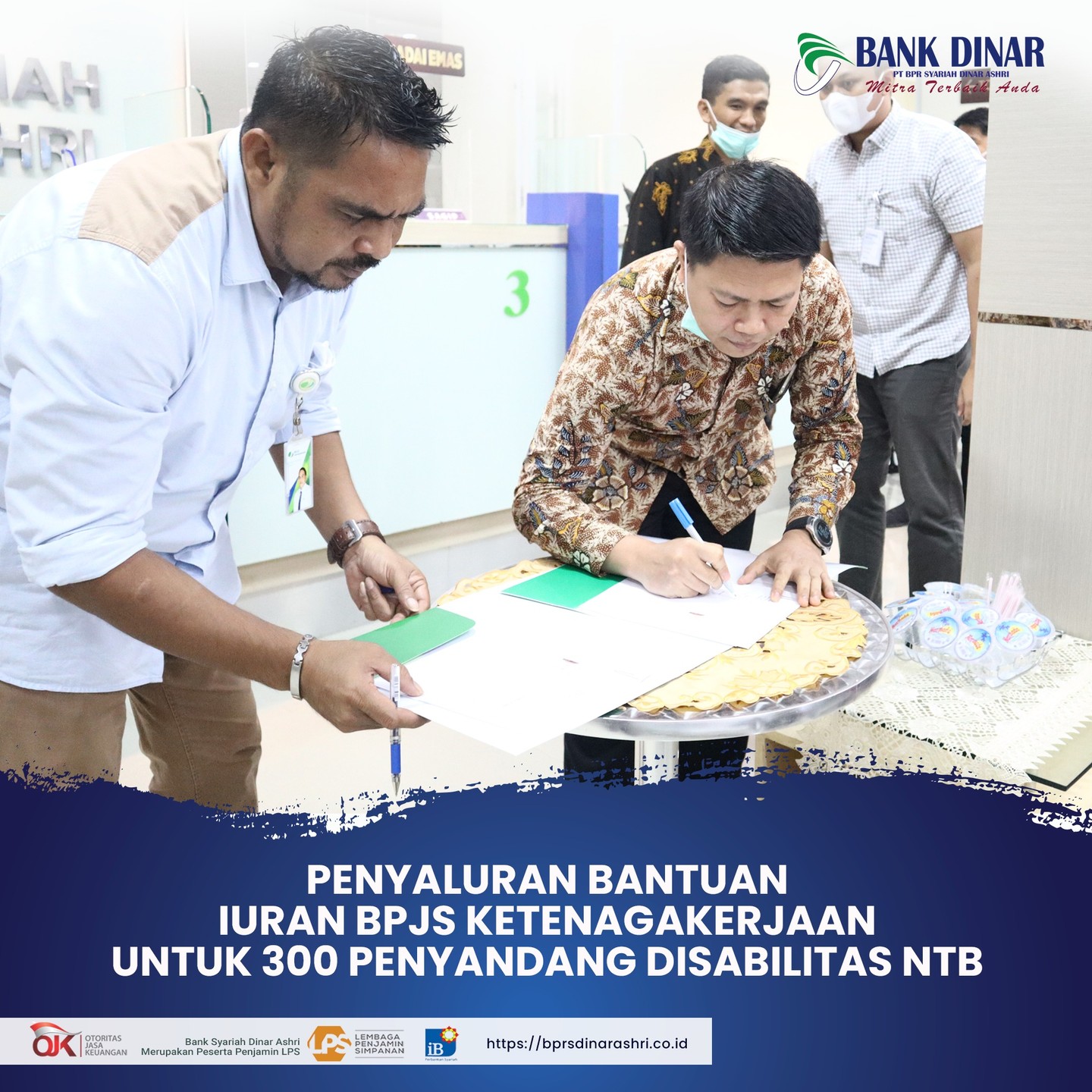 Bank Dinar menyalurkan bantuan berupa pembayaran iuran BPJS Ketenagakerjaan kepada 300 penyandang disabilitas di wilayah NTB.Pada program bantuan tersebut, Bank Dinar bekerja sama dengan BPJS Ketenagakerjaan Cabang NTB. Dan inisiator dari teman-teman Forum Wartawan Ekonomi NTB.Semoga bantuan yang diterima dapat bermanfaat.... Read more