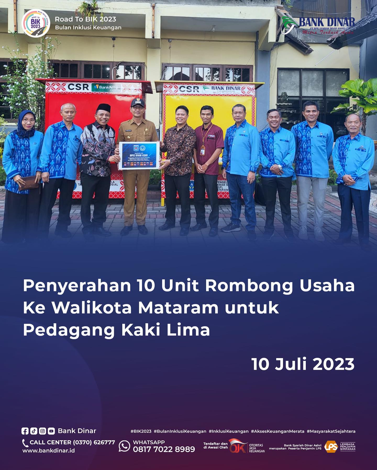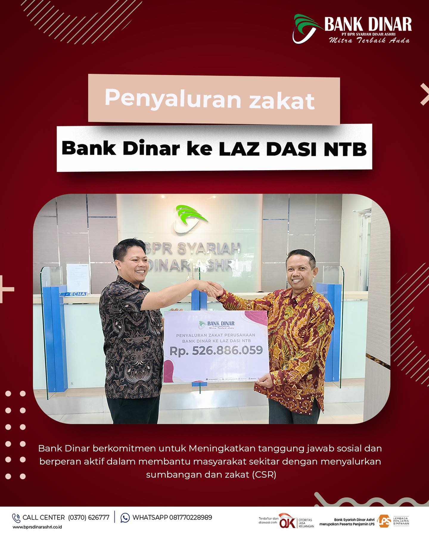 Assalamualaikum Sahabat Dinar,Bank Dinar berkomitmen untuk berperan aktif dalam membantu masyarakat NTB.Hal ini diwujudkan, di antaranya, dengan memberikan bantuan zakat kepada badan dan lembaga amil zakat seperti LAZ DASI NTB, BAZNAS NTB, dan BAZNAS Kota Mataram.Bank Dinar berharap dengan adanya kegiatan ini dapat menjadi inspirasi juga meningk... Read more