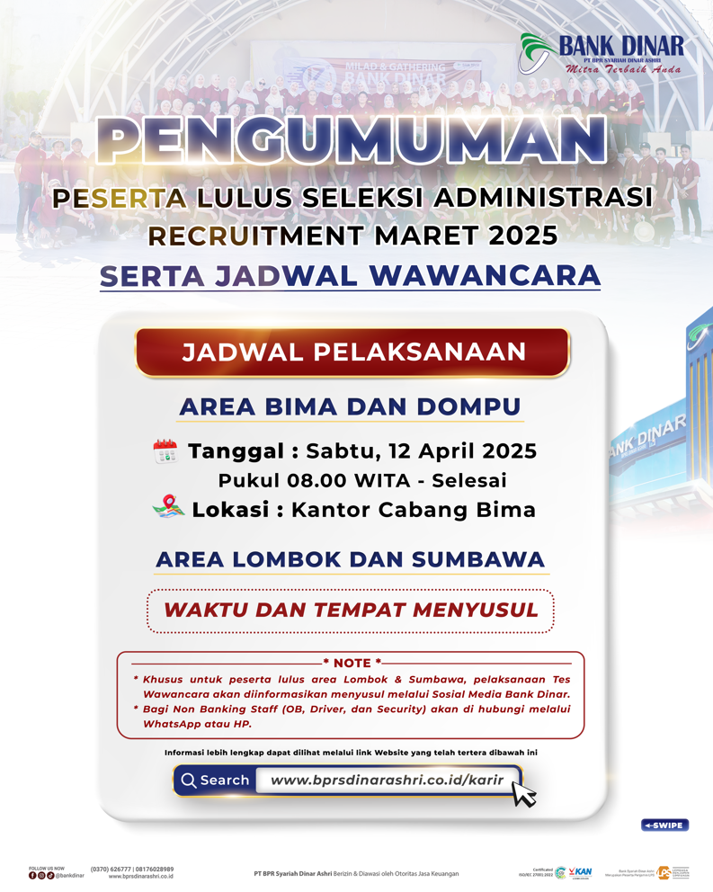 Kami tunggu kontribusimu untuk bersama membangun masa depan bersama Bank Dinar. 💼-