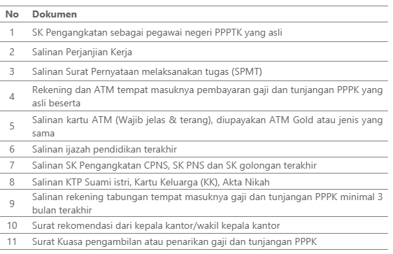 - Jatuh tempo pembiayaan maksimal 60 bulan atau jatuh tempo SK/Kontrak PPPK dikurangi 1 bulan